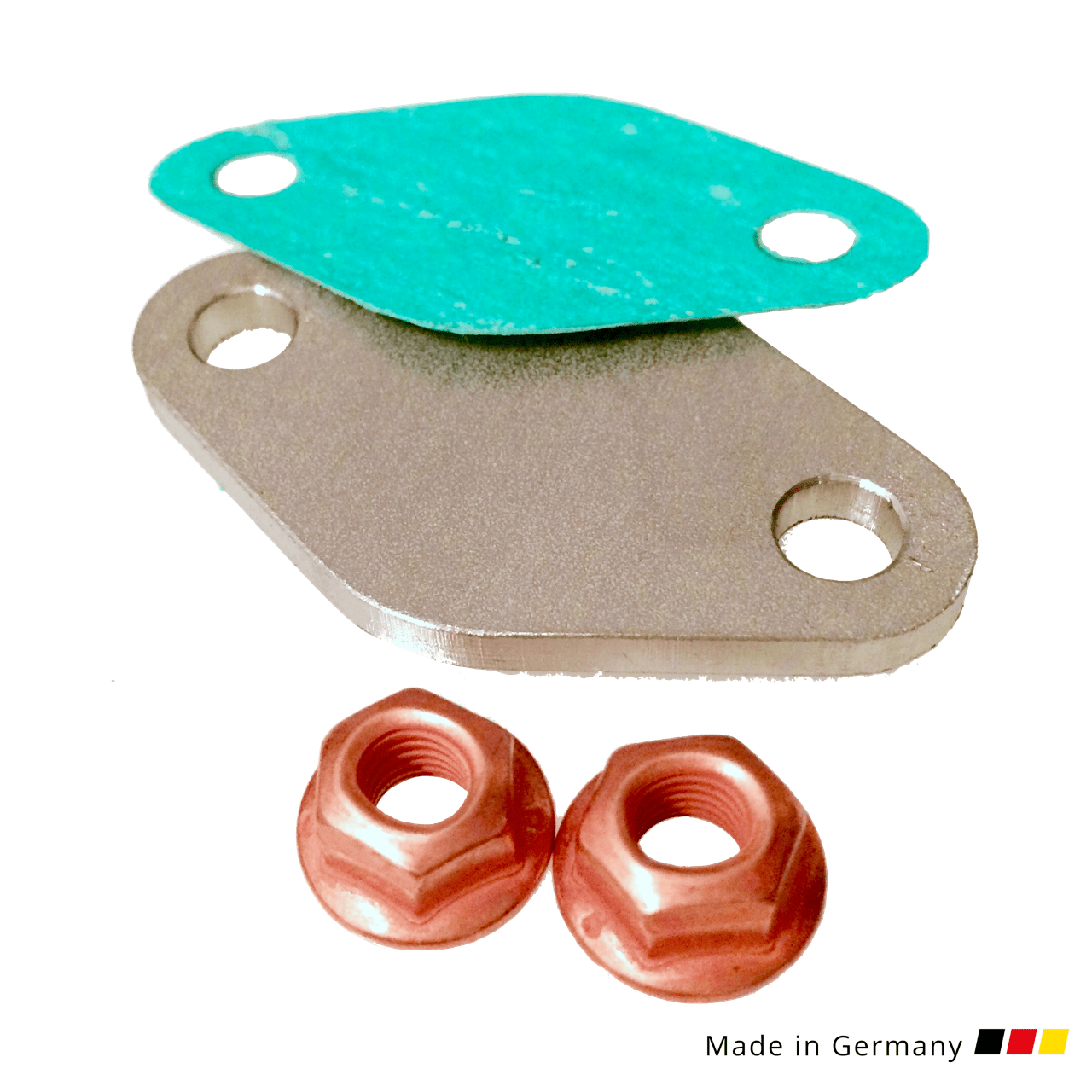 Mit dem Verschlussdeckel wird nach Demontage der Sekundärluftpumpe das Loch am Motorblock verschlossen. Passgenaue Dichtung und selbstsichernde Muttern werden mitgeliefert.