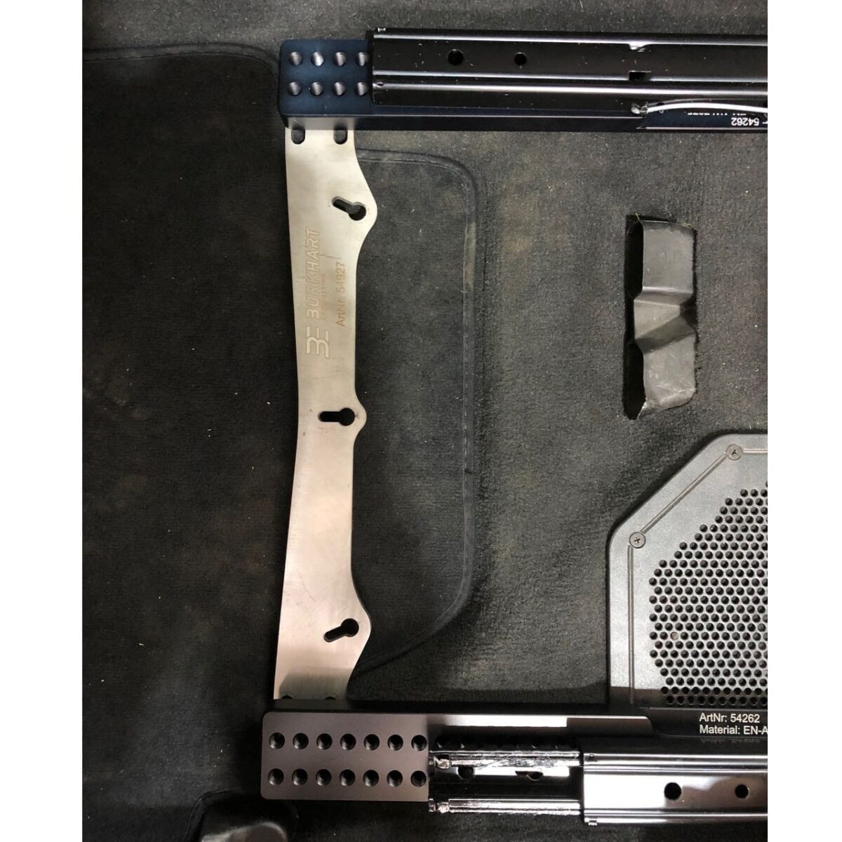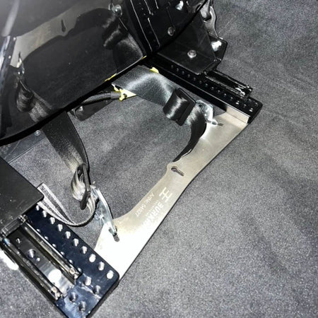 Mit Hilfe der Befestigungsplatte lässt sich der 6-Punkt Gurt an unsere Konsolen für F- und E-Serie montieren. Die Platte wird unten an die Konsole geschraubt.