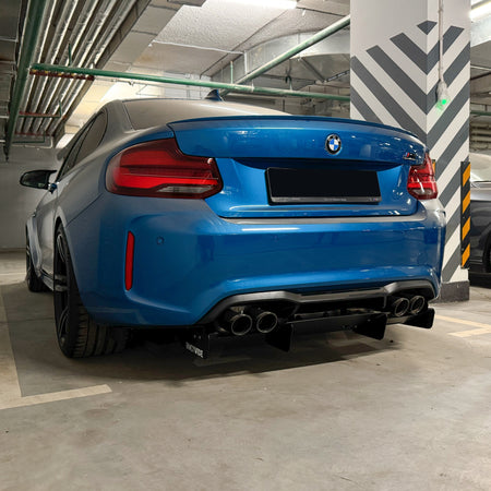 The Fancywide Rear Diffuser for the BMW M2 F87 is the perfect blend of aggression, style, and aerodynamic efficiency. Designed specifically for the M2 F87, it enhances the car’s signature lines, improves downforce, and gives it an even more aggressive stance.