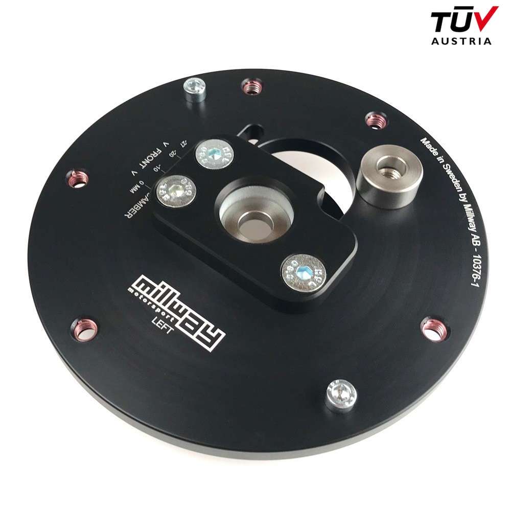 Die Fahrzeuge der F-Serie belasten durch fehlenden Sturz den Reifen auf der Außenschulter stark; bei sportlicher Fahrweise verschleißen diese somit extrem schnell. Unsere in Schweden entwickelten und gefertigten Domlager lassen eine einfache Sturzverstellung zu.